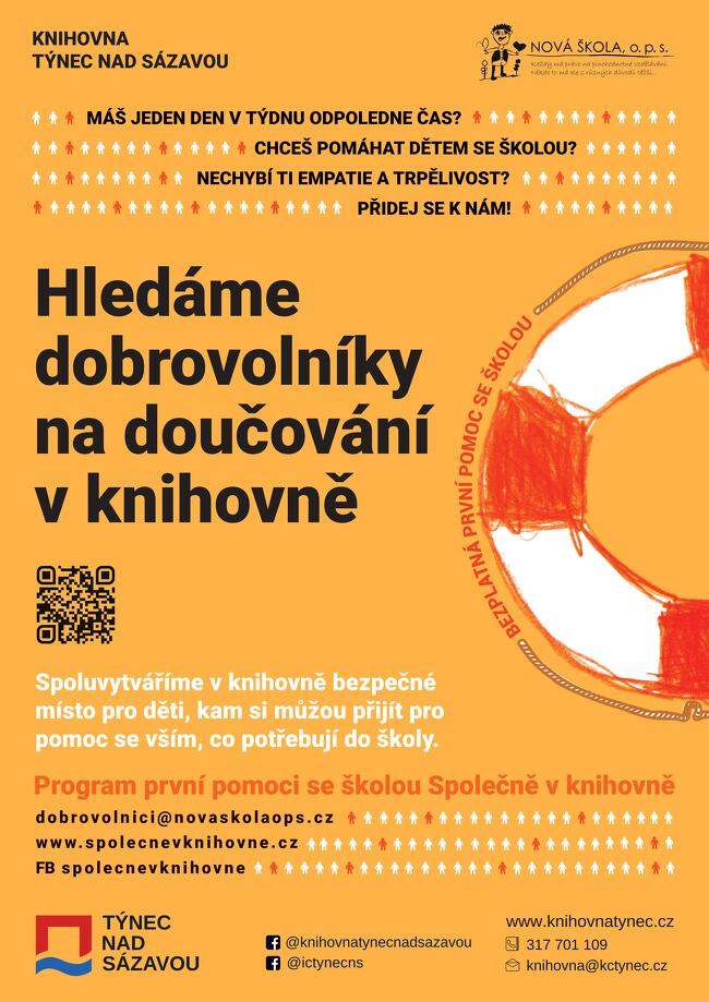 Rádi bychom obnovili odpolední doučování v Městské knihovně, které bylo přerušeno stěhováním, a proto uvítáme i nové zájemce o zapojení do tohoto projektu pořádaného pod záštitou neziskové organizace Nová škola, o. p. s.
