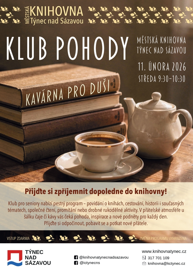 V přátelské atmosféře u šálku čaje či kávy vás čeká pohoda, inspirace a nové podněty pro každý den. Přijďte si odpočinout, pobavit se a potkat nové přátele.