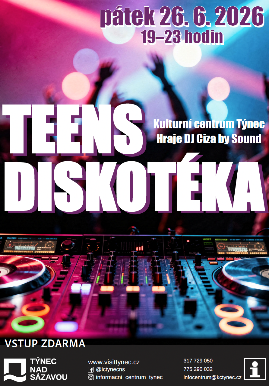 Hej kámo! Máme pro tebe jedinečnou akci a sice TEENS DISKOTÉKU v sále KC. Diskotéka je určena mládeži a dorazit můžou všichni, kterým bylo 13 let.